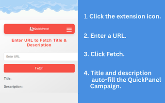 QuickPanel Campaign Auto-Fill är en användbar webbläsartillägg som förenklar skapandet av kampanjer. Med denna gratislösning kan användare automatiskt hämta titlar och beskrivningar från valfria webbsidor och fylla i QuickPanel kampanjformulär. Tillägget erbjuder en användarvänlig och ren design, vilket gör det enkelt för alla typer av användare, oavsett teknisk kunskap. Det sparar tid genom att eliminera behovet av manuell datainmatning, vilket är särskilt värdefullt för marknadsförare och företagare.